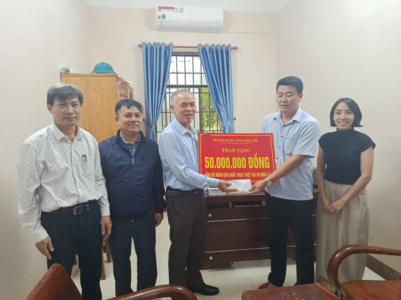 Sở Xây dựng tổ chức trao 500 triệu đồng hỗ trợ 10 xã, phường phía đông tỉnh Đắk Lắk bị thiệt hại do lũ lụt